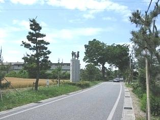 左手は近江鉄道愛知川駅へ通じていたが、右手に進んでいくと、愛知川小学校があった。校庭に二宮尊徳の銅像を見つけ二人で懐かしんだ。間も無く街道の頭上に「中山道愛知川宿」の看板が見えたので、近江鉄道の愛知川駅に向かった。