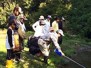 今日は「里山の水辺を取り戻そう‼︎」プロジェクトの第2弾です。前回、アメリカザリガニを駆除したビオトープを確認します。
