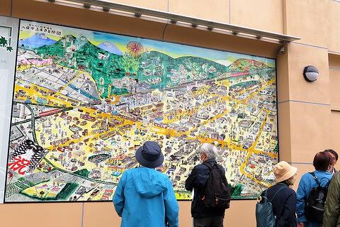 世界凧博物館東近江大凧会館へ向かいました。 途中、選択科目の授業でお世話になった上田先生が指導されて制作されたふるさと絵図が展示されてあり、興味深く見ている参加者。