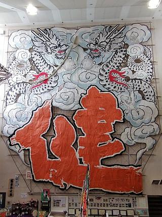 100畳もあると大凧というより巨大凧という感じで、壁一面を覆うくらいでした。