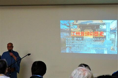 江州音頭会館へ。 三代目真鍮家文好さんから江州音頭の歴史の説明を受け、