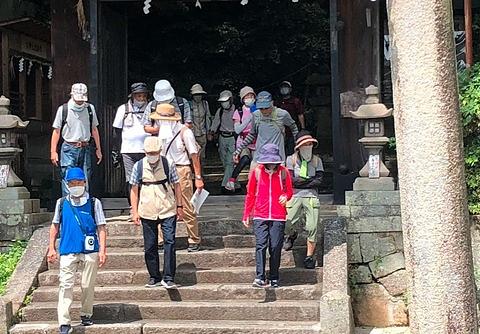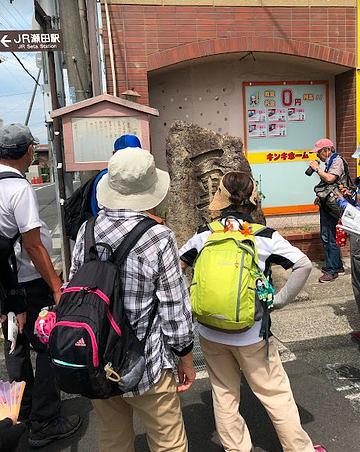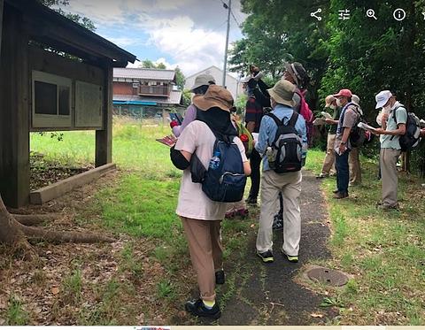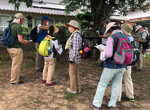 暑い日になりましたが、今回は全体で36名、レイカディア大学地域文化学科のお二人も課題の地域活動の一環として参加され、二班に分かれで石山駅から古代ロマン街道を歩きました。。