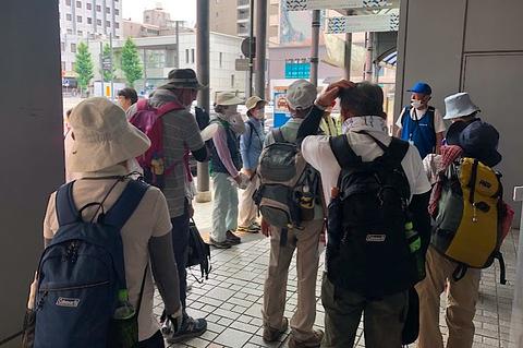 予定通りJR・京阪石山駅広場(2階)芭蕉像前前に集合され、出発前の確認です。