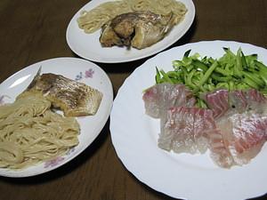で、主人に鯛と格闘してもらい2枚におろして、半身はお刺身に残りを切り身にしてもらいました。