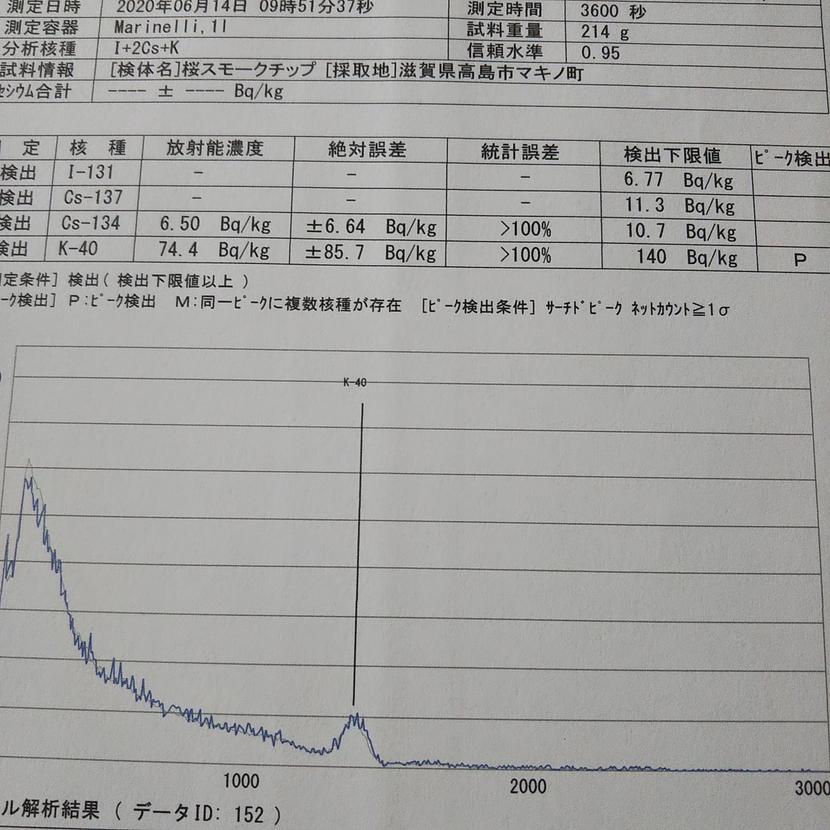 検体は私が先日、高島市マキノ町で購入した、桜の燻製チップです。