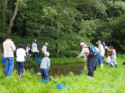 次は、アメリカザリガニを駆除したビオトープに水草を移植したり、水生昆虫を放したりと、再生へ向けてステップに進みます。
