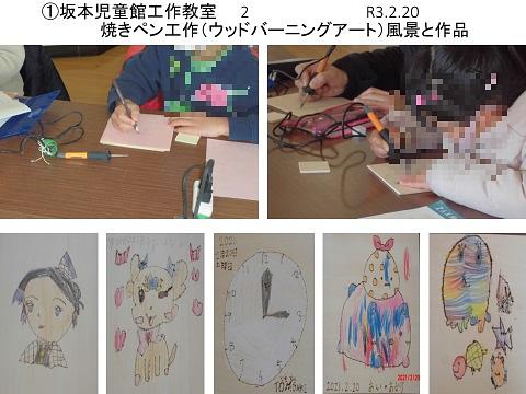新型コロナ感染問題がなかなか終息の見えてこない中、坂本児童館の広い多目的会議室にて、未就学児童・小学生・保護者・職員の皆さん・スタッフも含め皆元気に参加しての工作教室開催でした。会場の設定に関し電熱ペンは風の流れを嫌うため、室内の半分はエアコンを止め、また換気等の3密対策の配慮をいただきながら実施しました。