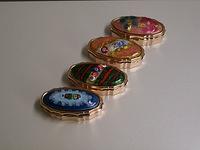 七宝焼きは銅版や銀板の上に釉薬といわれる絵の具をのせ800度~900度の電気炉で焼きます。数分後釉薬が溶けてガラス様あるいはエナメル様に美しい色彩を施します。釉薬ののせ具合や微妙な温度差で二度と同じ物が出来ないオリジナルな物が出来上がります。