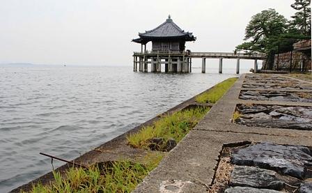 建て込んだ浮御堂の前には、大きくはないが観光客用の駐車場も備えられ、観光地化されていた。作家三島が描いた情景には、味わいのある近江の情趣がそこはかとなく伝わってくるが、この地には、すでに昔日の風情はなくなっていた。