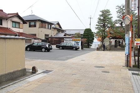 三島が通ったと思われる道路を辿っていった。今では自動車が通るには狭いが、当時では普通の道路であったのであろう。右手に郵便局があり、その道を突き当って、左折すると、竜宮城の門に似せた浮御堂があった。堅田港から浮御堂までの位置関係は当時と同じようだ。