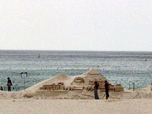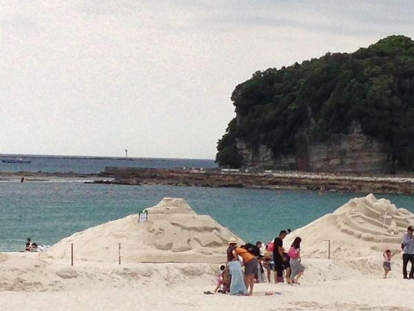 白浜では「砂まつり」というイベントが行われていて、ちょうど作品を作り終えたあとの表彰式の真っ最中でした。