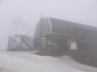 雨は降っていなかったが、比良山系の峰々は、流れの速い雨雲に覆われていた。仲間も集まってきたのでIR志賀駅から路線バス乗車でびわ湖バレイに行った。終着のびわ湖バレイゴンドラ山麓駅前の広場は、あの喧騒と打って変わり閑散としていた。