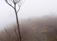 更に、ホッケ山(1050m)から、権現山(996m)まで稜線伝いに一目散に下山してくると風も収まり、視界も徐々に広がり、琵琶湖もわずかに一望できるようになってきた。途端に、気持ちに余裕も出てきた。