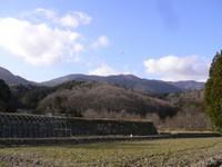 権現山の道標もすっかり雪解 権現山から蓬莱山の山並み
