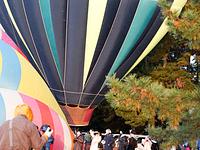 湖畔から松林まで奥行きがあまりない。奥まった熱気球の離陸で、松の枝に引っかからないか心配だった。松の枝をかわしながら、「じわっと」大空に。 全て、無事離陸するまで、見届けていた。