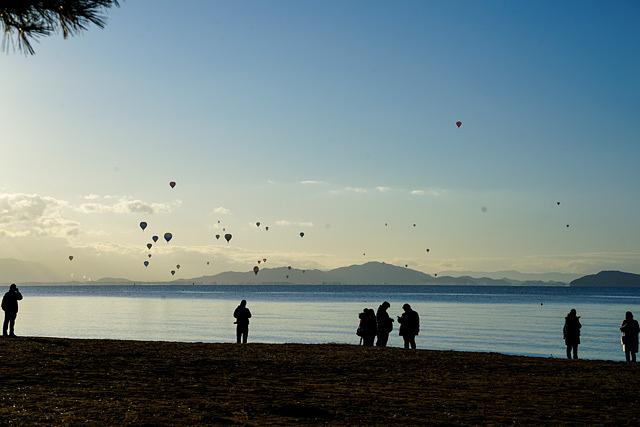 2017年12月2日 暗い内から、国道161号湖西道路を走り、近江白浜水泳場へ向かった。ここで、第41回熱気球琵琶湖横断が行われる手筈になっていた。