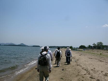 サクサクと砂浜の音を聞き、琵琶湖から吹いてくる心地よい風を受けながら、しばし贅沢な時間を味わった。 この浜辺には絶滅危惧植物のタチスズシロソウの群生地が発見されたところであり、以前尋ねて行ったことがあった。今回、先を急いでいたので、確認できないまま通り過ぎて行った。