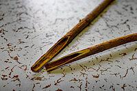 花緑公園の案内板にはウツギの表示がなく、なかなか見つけられなかった。木の下に散らばっている枯れ木をひらい上げては、中空の枝を探した。一本ずつ確認するのに骨がおれた。何周も公園内を歩き回り、ついに空洞の枝を見つけた。ウツギの葉は細長い卵形で先が尖り、対生で生えており、まさにウツギであった。