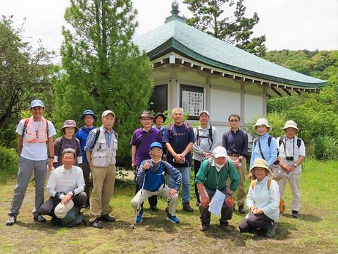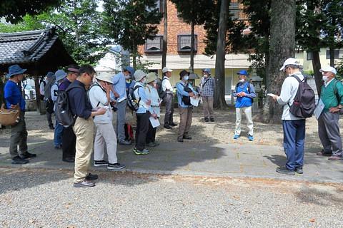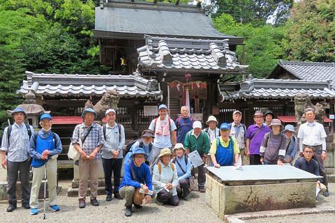 すぐ横の近津尾神社で歴史の説明をし、集合写真です。