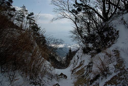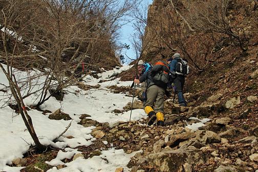 2月末、イン谷から、金糞峠を目指し、堂満岳(標高 1,057 m)を登った。厳冬期だと言うのに、地肌がむき出しだ。