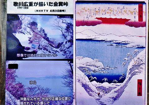 この峠に、「比良の暮雪」の絵図に関する掲示板がある。歌川広重(1797 ~1858)が最晩年に描いたと言う竪判構図絵。
