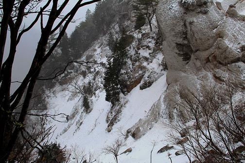 2016.02.21、この日、イン谷には大勢のヘルメットを被った若者が、集結していた。アイスクライミング訓練のために、ハーネスにアイスピック・カラビナ等を装着して早めに出発していった。われわれは一般ルートで登り、第3ルンゼ辺りを覗き込んだが、登攀者は見えなかった。ルンゼには余にも雪が少なく、撤退したのであろう。