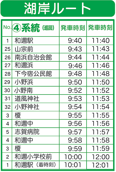 1)JR湖西線のダイヤ変更にあわせて和邇駅発-日赤病院行きバスを8:00にスタートします。(従来は8:03)