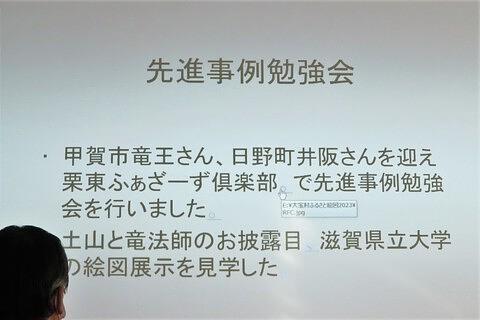 午前中はふるさと絵図を作った大宝ふるさと絵図の会の西村さんから会の立ち上げから始まり、仲間づくり、栗東市・栗東高校美術部の協力、制作過程についてお聞きしました。