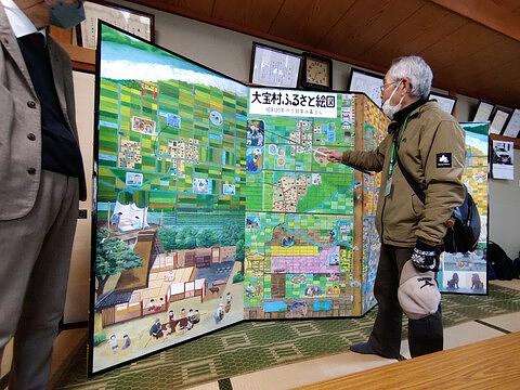 今回は地域コミュニケーション論で感化を受けた先輩方が作った大宝村ふるさと絵図についてです。