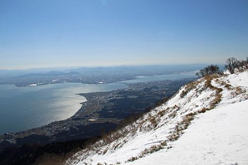 琵琶湖は、かつて「淡海の海」「鳰(にほ)の海」「さざなみ」と呼ばれて、室町時代の後期になって今の呼び名になった。湖のかたちが、南にくびれ北に向かって広がっている。このかたちが、楽器の「びわ」に似ていることから名前が決まったようだ。 最狭部に架かる琵琶湖大橋を挟んで、北側部分の北湖、南側部分の南湖と呼んでいる。このくびれたあたりの地形が、私にとって、気になるところであった。 私の今回に山行の目的は、頭に描くこの特異点の俯瞰図と実際見下ろした光景を再度、照らし合わせてみたかった・・・・。